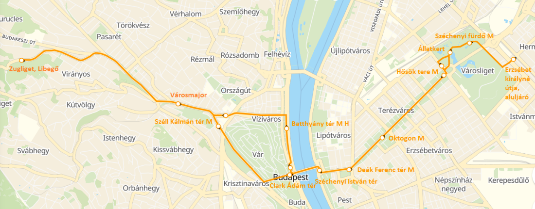 Az N4-es megállói: Városliget (Erzsébet királyné útja, aluljáró) - Széchenyi fürdő - Állatkert - Hősök tere - Oktogon - Deák Ferenc tér - Lánchíd (pesti és budai hídfő) - Batthyány tér (csak Zugliget felé) - Széll Kálmán tér - Városmajor - Zugliget, Libegő