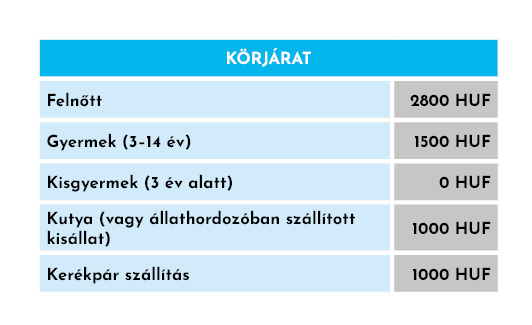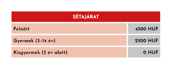 - A Sétajáratra (2 alkalom/este) alkalmanként külön jegyet kell váltani.