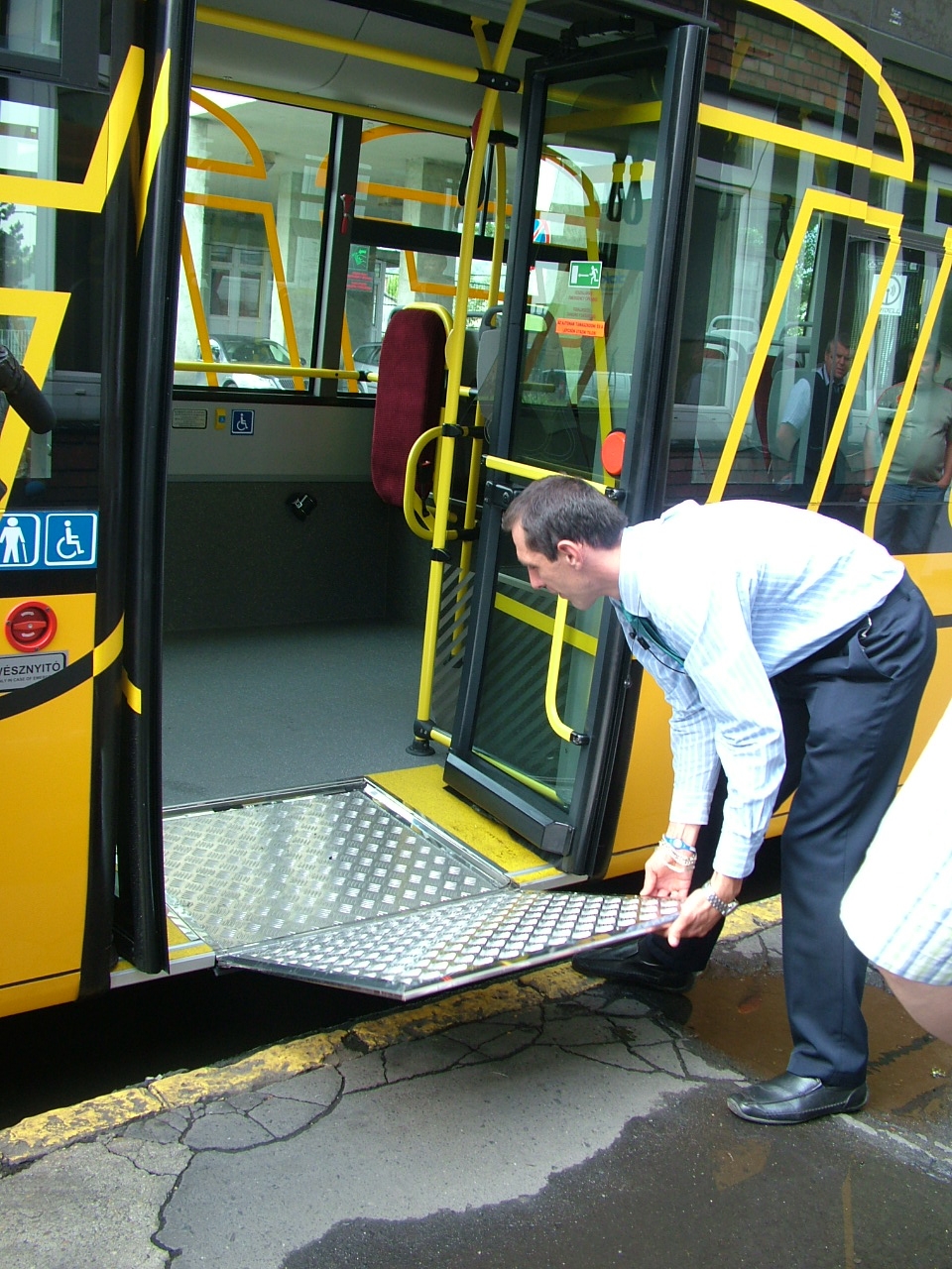 A második utasajtónál kihajtható rámpa a kerekesszékes utasok részére. |
