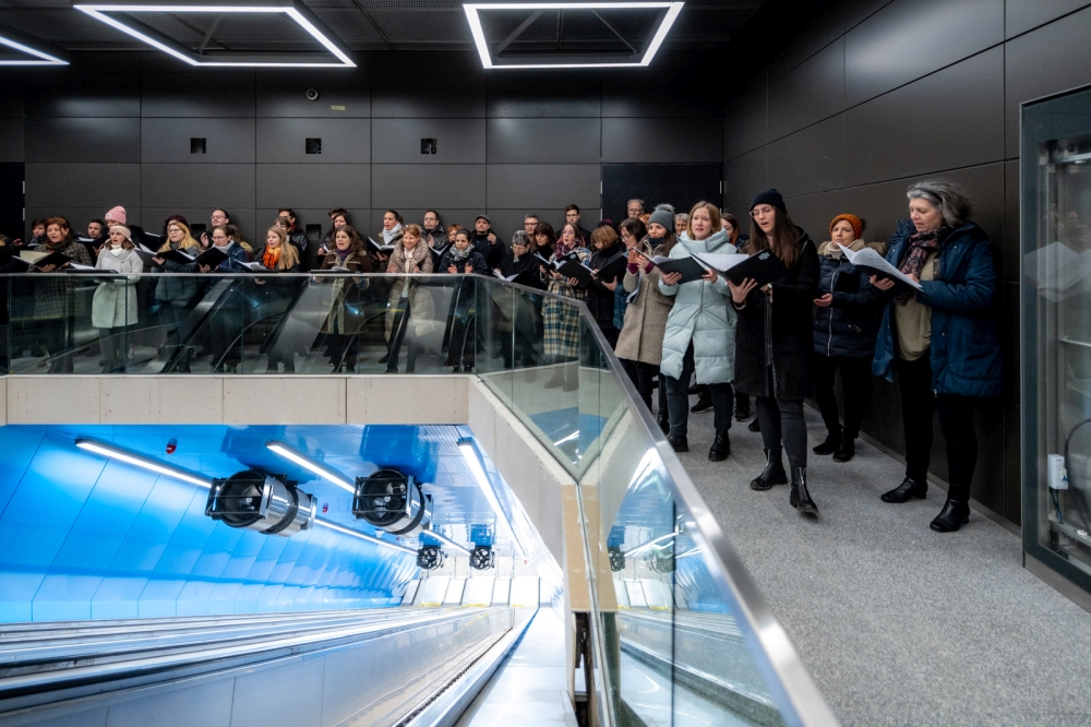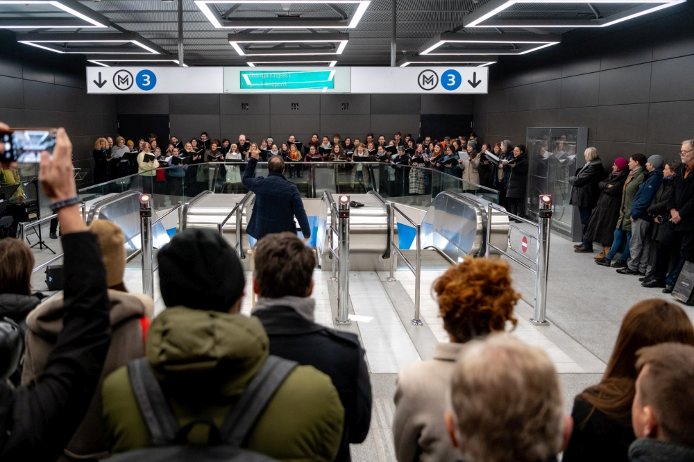 Az M3-as metró történetében első alkalommal fordult elő, hogy egy állomás koncertnek adott helyet. Az átszállószinten, ahová több mint két éve csak munkavédelmi felszerelésben léphetnek be a felújításon dolgozók, egy este mindenki elegáns öltözetben jelenhetett meg. Az új és modern tér, ahol hamarosan utasok tízezrei fordulnak meg naponta, mintha főpróbát tartott volna, végre pezsgő forgatagot fogadott. A közönség a metrófelújítás tervezőiből, irányítóiból, szervezőiből és aktív résztvevőiből állt. A fővárost Tüttő Kata főpolgármester-helyettes képviselte, aki bécsi kollégáival érkezett.