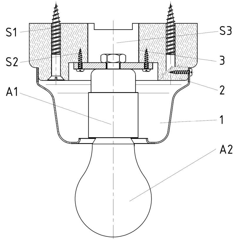 A lámpa igen egyszerű, egy fa alapra szerelt izzó foglalatól és az azt takaró alumínium harangból áll. A fa alap különféle méretekkel készült a peronon és az utastérben, illetve alakja igazodott a jármű mennyezetének vonalához. A foglalat kezdetben acéllemezzel volt rögzítve a fa alaphoz, de így a rázkódások csillapítatlanul jutottak az izzószálra, ezért gyakori volt az izzók kiégése. Később egy dolgozói újítás nyomán vastag bőr csíkkal rögzítették a foglalatot, így a rezgések csillapítása megoldódott.