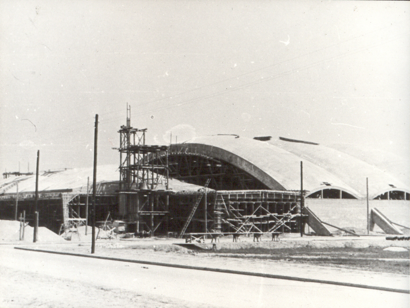 A 6 200 négyszögölnyi területen 20 000 köbméter föld feltöltésével 1939-ben indult meg az építkezés, amelyet honvédelmi érdekeket szolgálóvá minősítettek, így az építőanyag ellátás tulajdonképpen zavartalan volt. A BM döntése alapján módosították a tervdokumentációt, és így már 120 helyett 180 autóbusz elhelyezésére alkalmas garázst kívántak létrehozni 1941 végére elkészült a nagycsarnok és a javító műhely vasbeton vázszerkezete ás annak idején egyedülálló tetőzete, mely 82 méteres fesztávjával ez a világ legnagyobb héjszerkezetű csarnoka volt. Ugyanekkor elkészült az üzemanyagtöltő és a porta épület is, míg az emeletes műhely ás épület befejező munkái még folytak. A garázs építészeti tervét Padányi Gulyás Jenő, a bravúros statikai terveket pedig Dr. Menyhárd István készítette. 1942-ben megkezdődött a telep bekerítése és megindultak a csatornázási munkák.