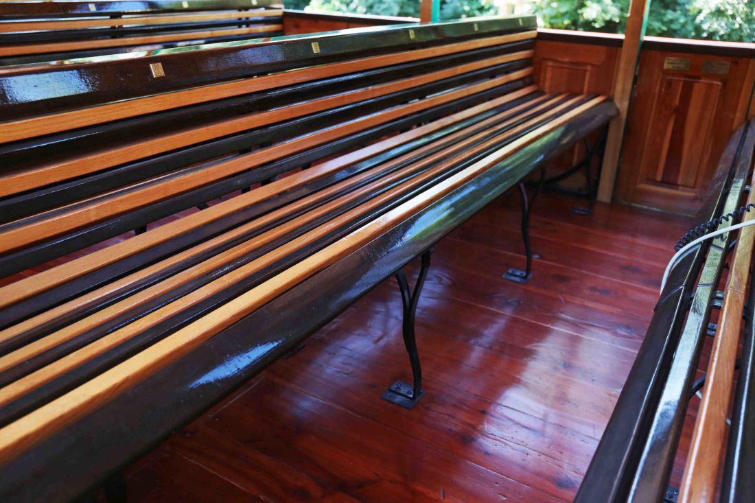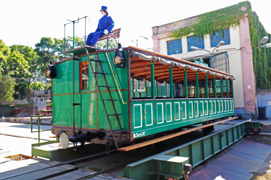 Az 1874-es induláshoz három, 120 lóerős gőzmozdonyt, tíz zöld, nyitott személykocsit és három fedetlen teherkocsit vásároltak. Egy évvel később egy mozdonnyal és két személykocsival egészült ki a járműpark. A gőzmozdonyokat a svájci Winterthurból, a Schweizerische Lokomotivfabriktól, a személy- és a teherkocsikat a Bécs melletti Hernalser Waggonfabriktól szerezték be. A sokszor csak „kávédarálóként” emlegetett mozdonyok mindig a szerelvény lejtő felőli oldalán helyezkedtek el, felfelé tolták, lefelé fékezték az egyébként össze nem kapcsolt személykocsikat. A kocsik tetején a fékezők nyitott ülésen foglaltak helyet, ahonnan az egész pályát jól be lehetett látni.