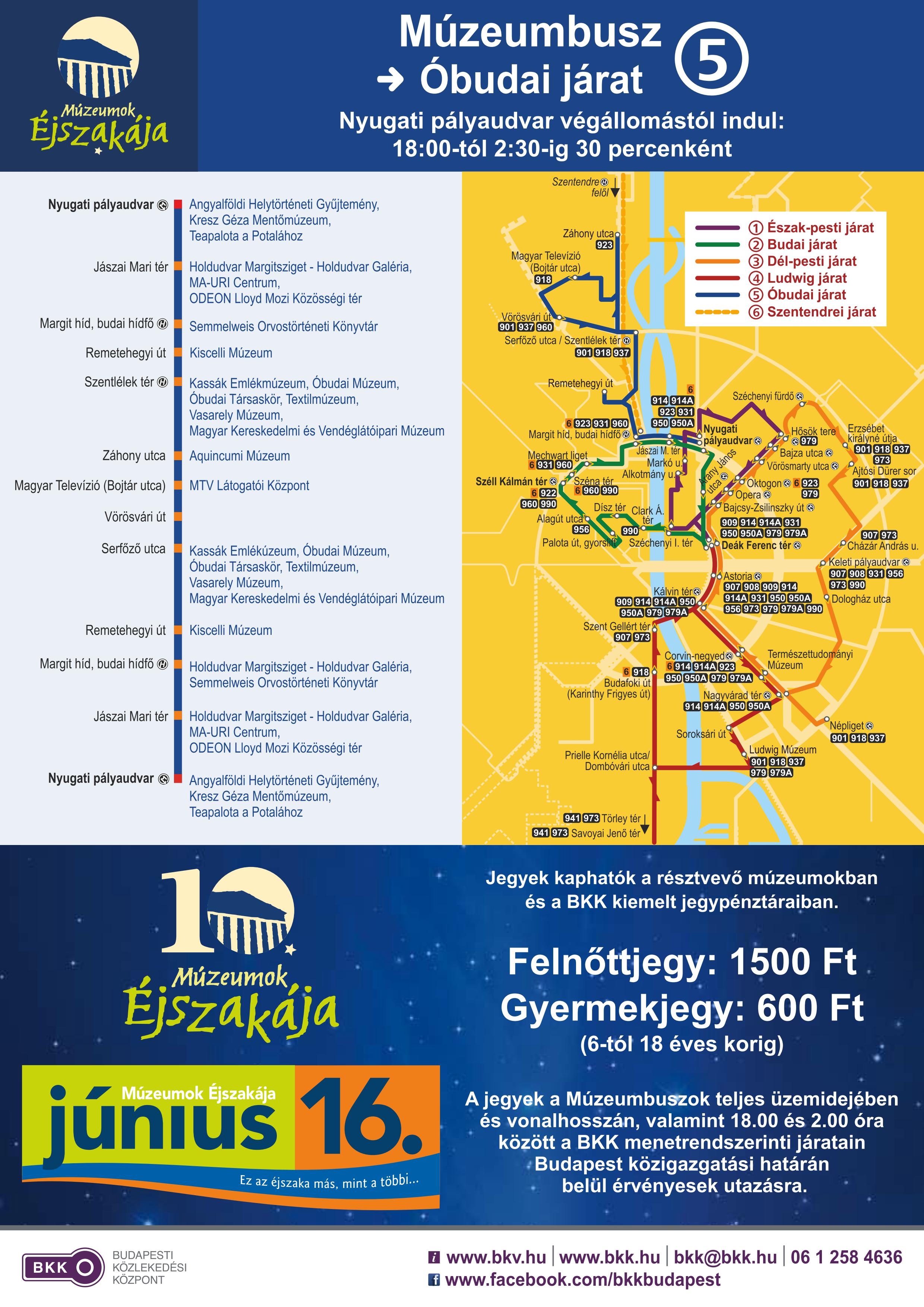 A Múzeumok Éjszakája karszalagjaival újra ingyenesen utazhat a múzeumbuszokon és a BKK összes menetrend szerinti járatán, szombaton 18 órától vasárnap hajnali 2 óráig.