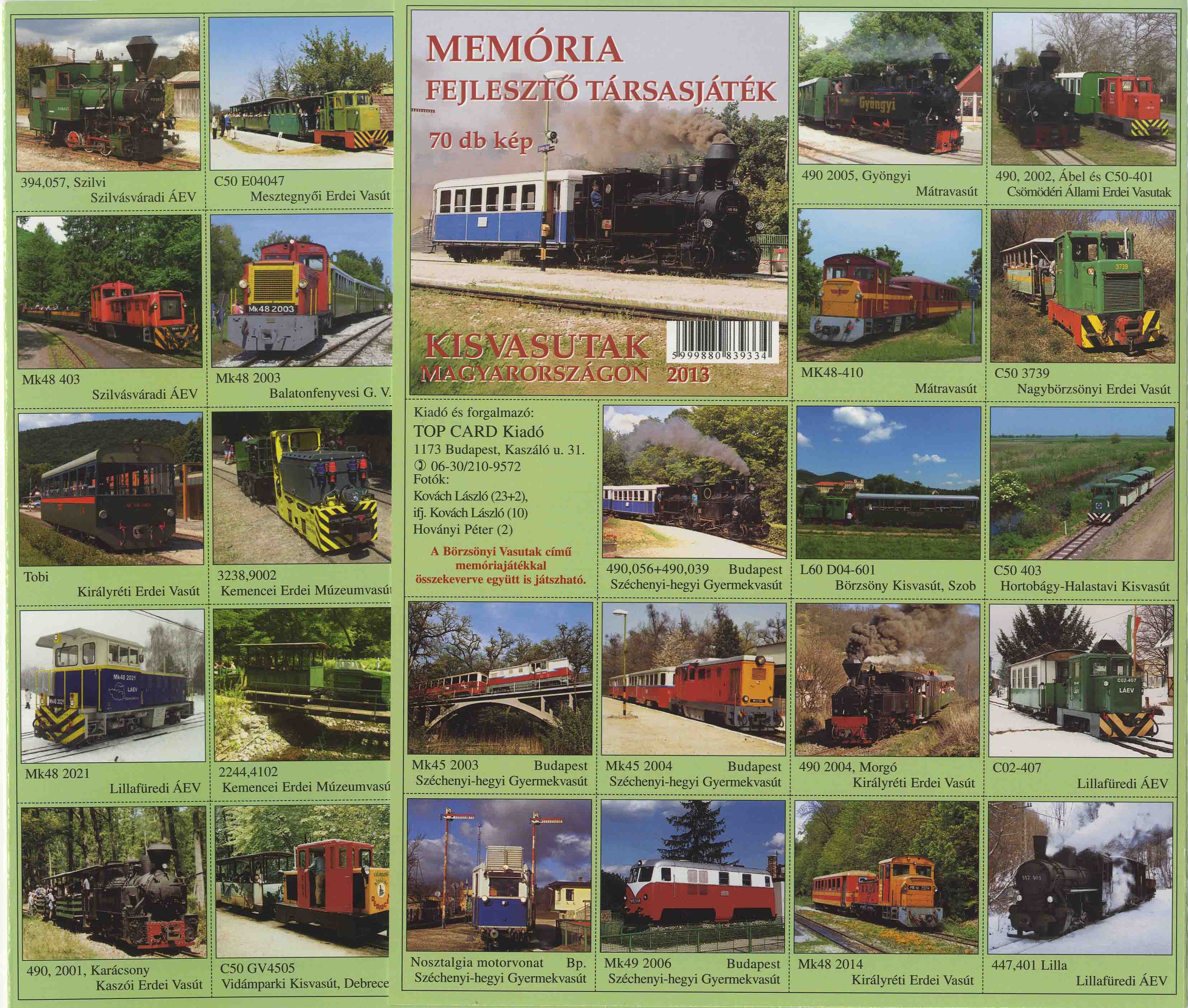 Gyermek memóriajáték különböző jármű típusokkal, pl. vasúti mozdonyok, kisvasutak, autók