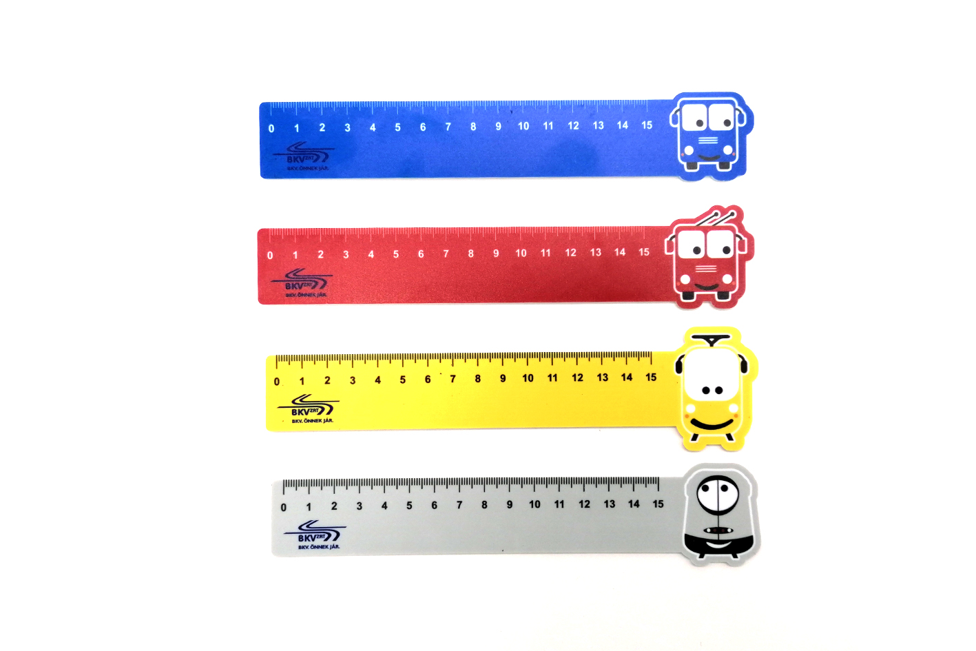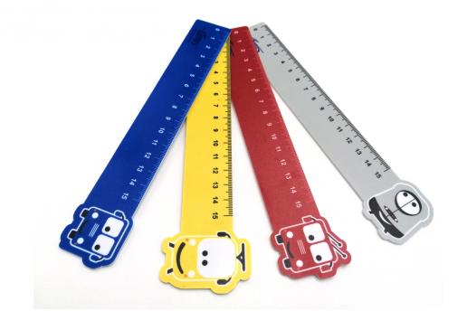 Műanyag vonalzó négyféle jármű kedves figurájával